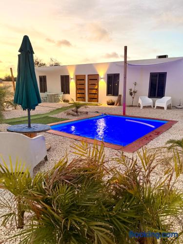 Dreaming of Curaçao? Book our pool side 1-bedroom apartment for comfort and convenience! We're centrally located near the airport, shopping, and the beautiful sea. With Top Restaurants within 5mins. Enjoy a refreshing pool and tropical vibes. Peaceful and secured neighborhood. Benefit from free on-site parking and AC for a cool stay. Equipped with Fast Wifi, smart Tv’s and a nice kitchen so you can cook your own meals. Located 9 minutes away from the beach.